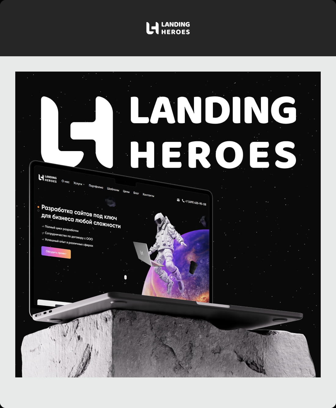 Landing HEROES – команда профессионалов, работающая с 2018 года. У нас возможна разработка сайтов любой сложности и для различных целей: от одностраничного сайта, визитки и корпоративного сайта, до огромного маркетплейса или сервиса.